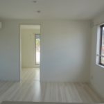 平成27年築、前原海岸近くの賃貸アパート。このアパート内でも数が少ない2LDKの間取。LDKを挟んで洋室が2部屋あり。駐車場は50mほど離れた場所にあり。